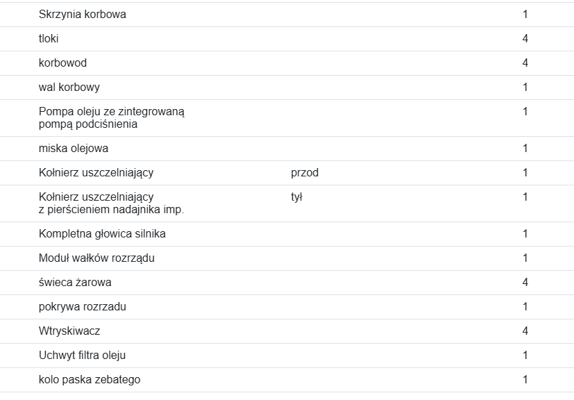Wszystkie wyszczególnione w powyższym wykazie oraz widoczne na zdjęciach elementy są zawarte w cenie silnika.