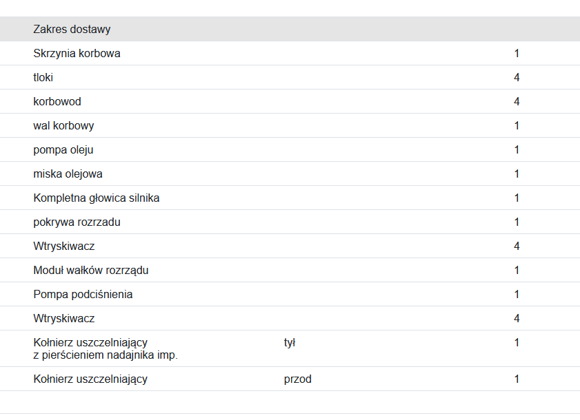 Wszystkie wyszczególnione w powyższym wykazie oraz widoczne na zdjęciach elementy są zawarte w cenie silnika.