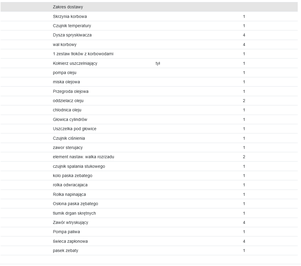 Wszystkie wyszczególnione w powyższym wykazie oraz widoczne na zdjęciach elementy są zawarte w cenie silnika.